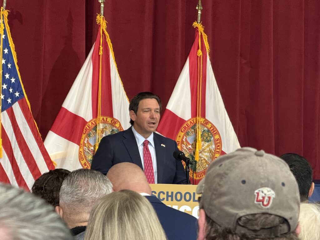 DeSantis made the announcement at Grace Christian School in Valrico as part of National School Choice Week. The school has 682 students on a Florida choice scholarship. The governor stood at the dais behind a sign that read, “School Choice Success. Florida is leading the nation.”
