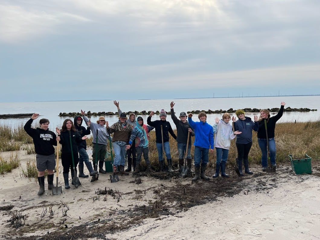 ED Corps High School serves kids who were not a good fit for traditional schools. It emphasizes life skills and job skills and industry certifications. And its students spend a third of their time outdoors, often working on conservation projects that mesh with the community fabric – like planting marsh grass to stabilize shorelines, or planting oysters so that someday, people can get back to tonging them up.